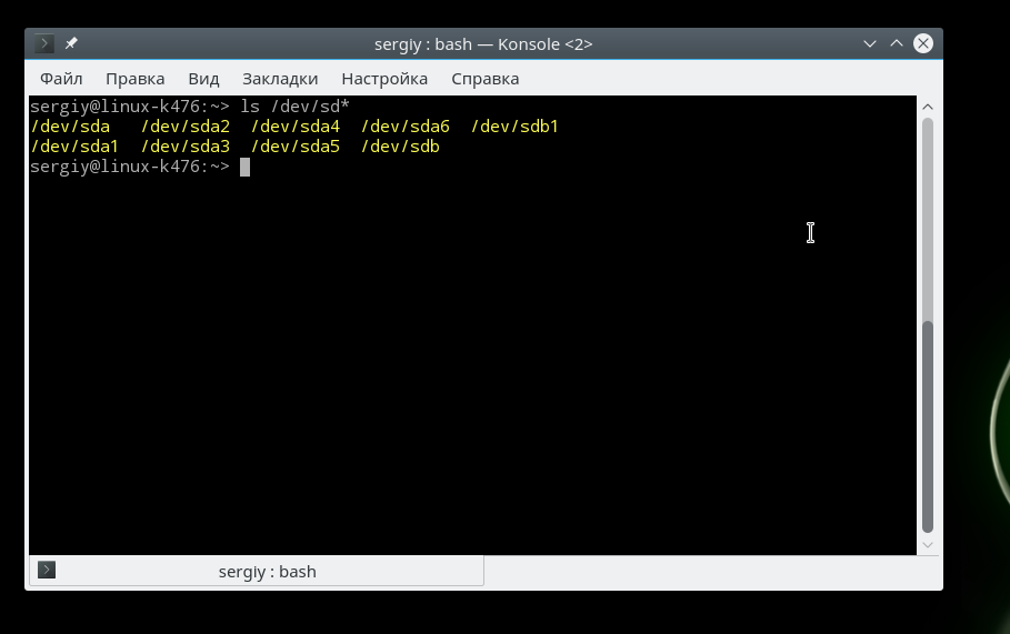 Есть еще один способ, это утилита fdisk. Она позволяет посмотреть таблицу разделов на всех блочных устройствах, подключенных к компьютеру. Но утилиту нужно выполнять от имени суперпользователя: