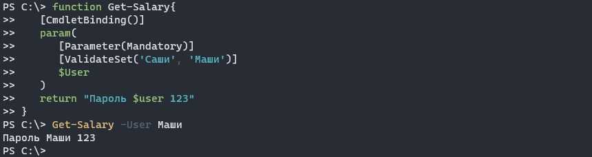 Если вы укажете значение не прописанное в ‘ValidateSet’, то получите ошибку: