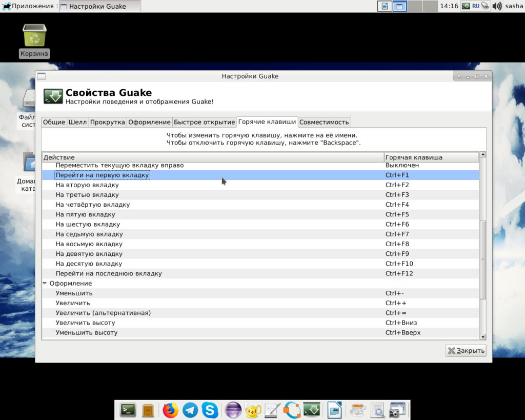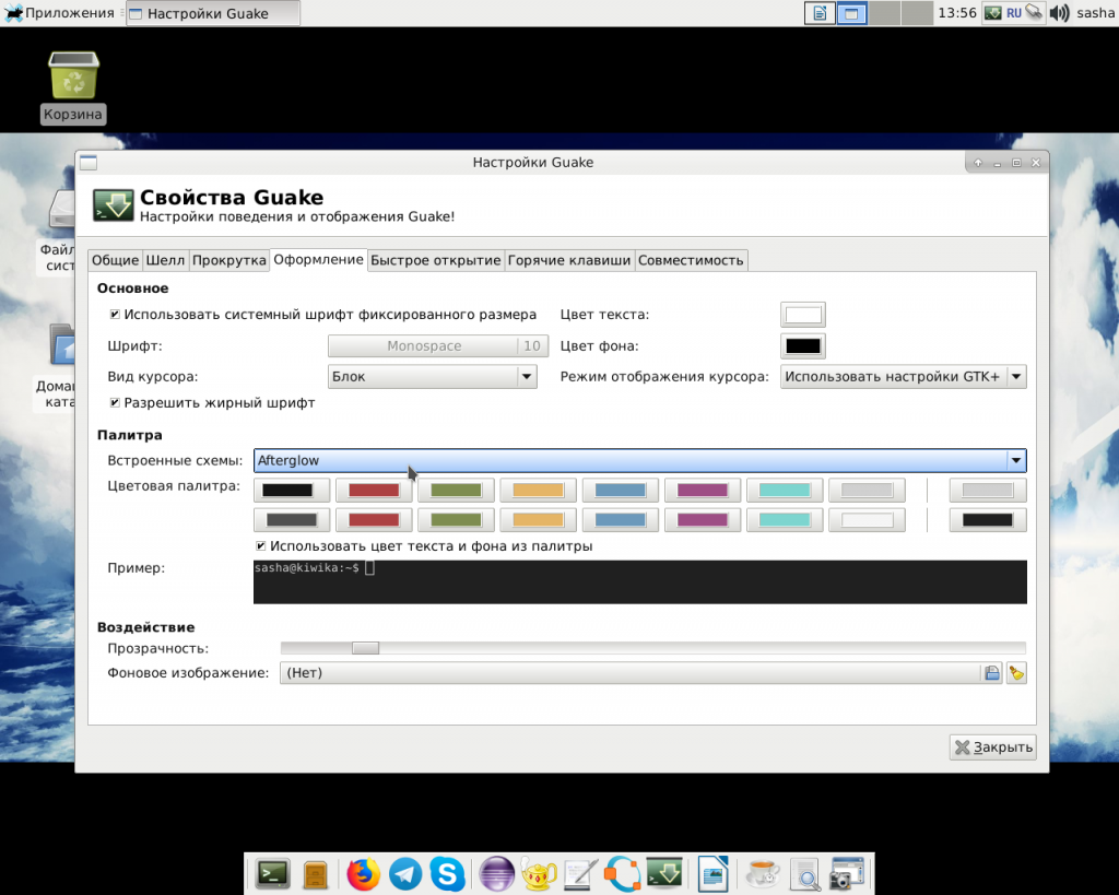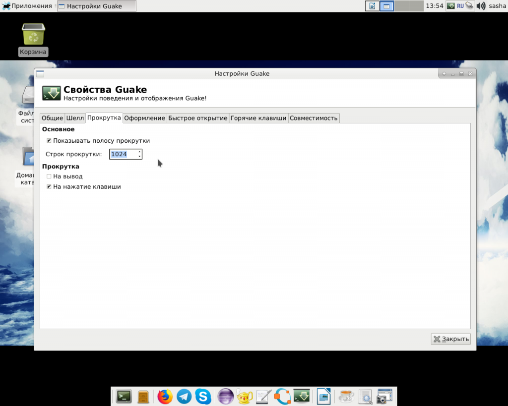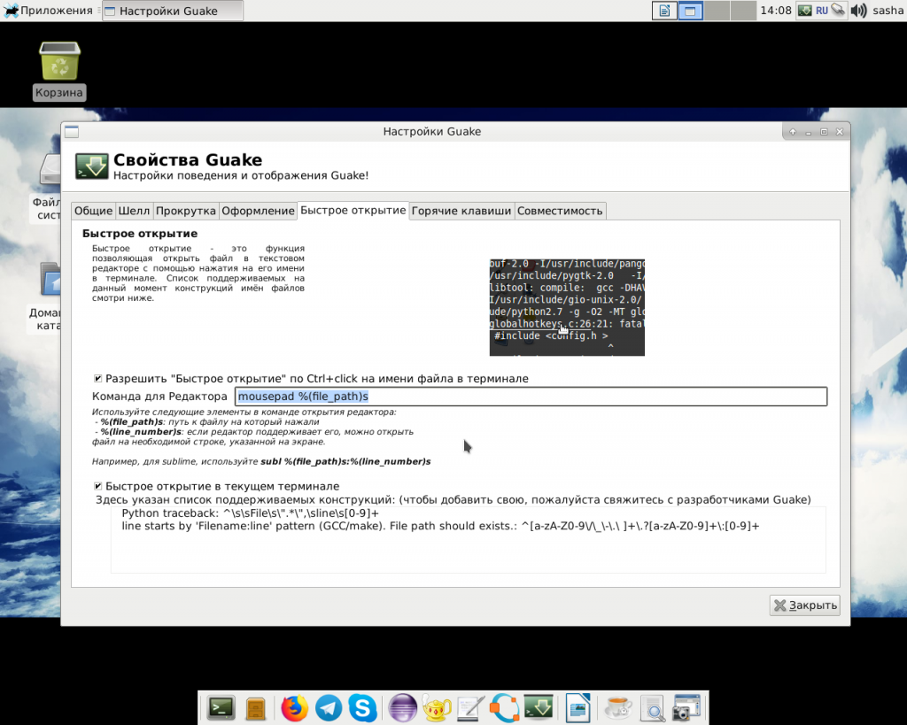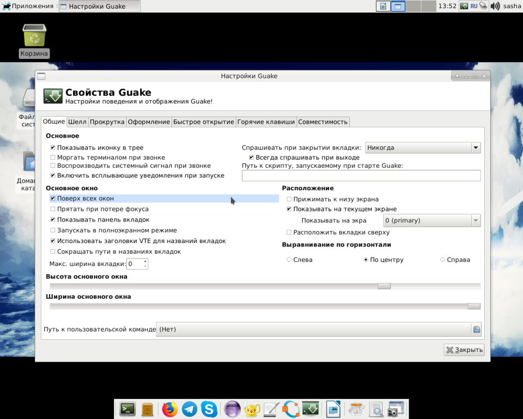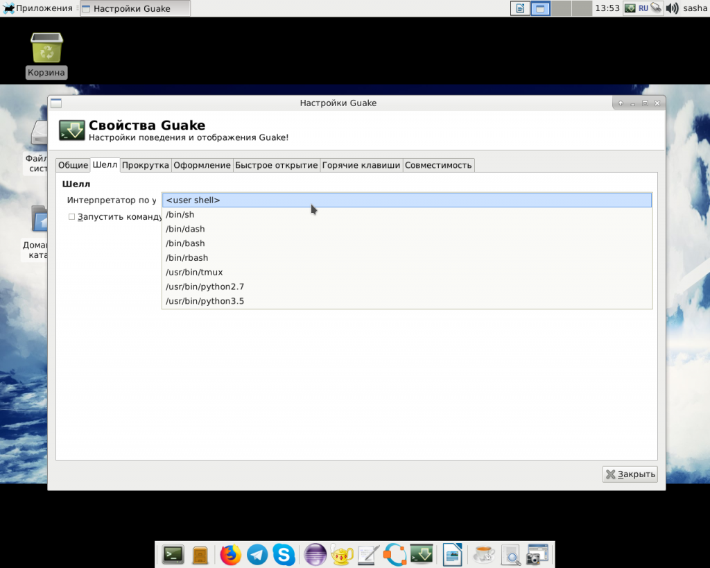 После запуска значок Guake появится на панели. Guake готов к работе.