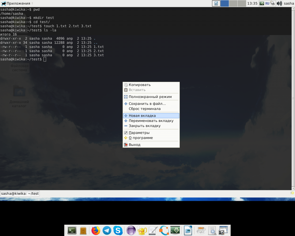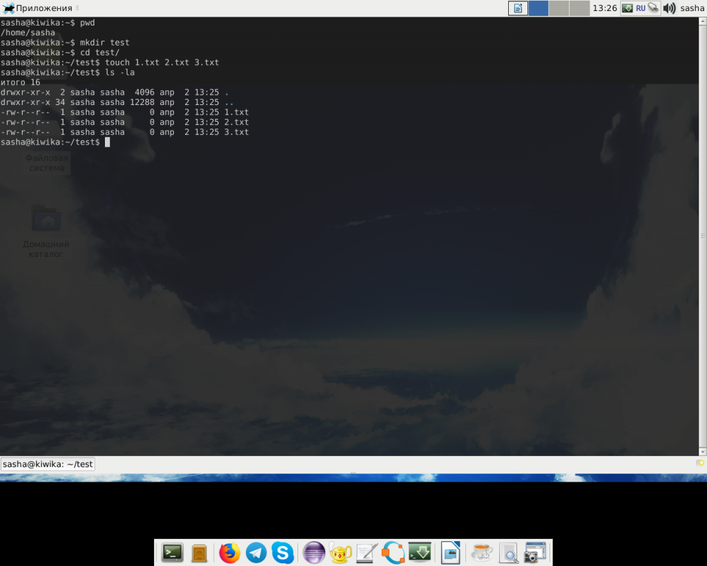 Начну рассказ наверно с того, что в любой момент времени работы в терминале вы находитесь в некотором каталоге. При запуске терминала текущей директорией является домашний каталог пользователя, но потом вы конечно можете её поменять.