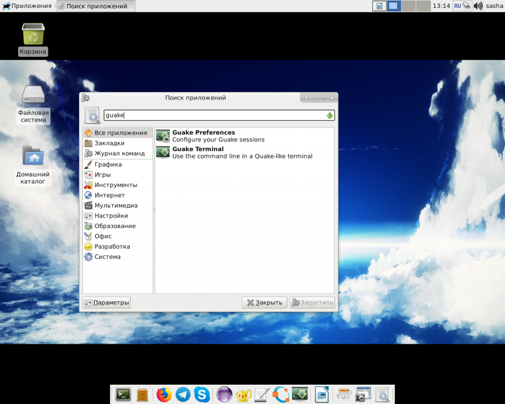 Теперь, чтобы начать пользоваться Guake, найдите его в поиске приложений и запустите.