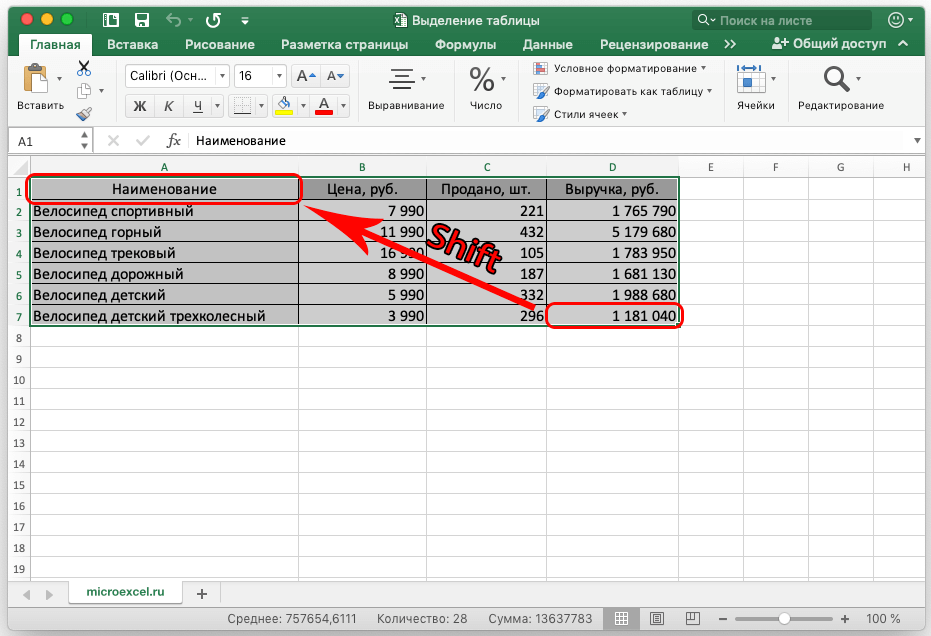 Вариант 3: выделение с помощью клавиши Shift