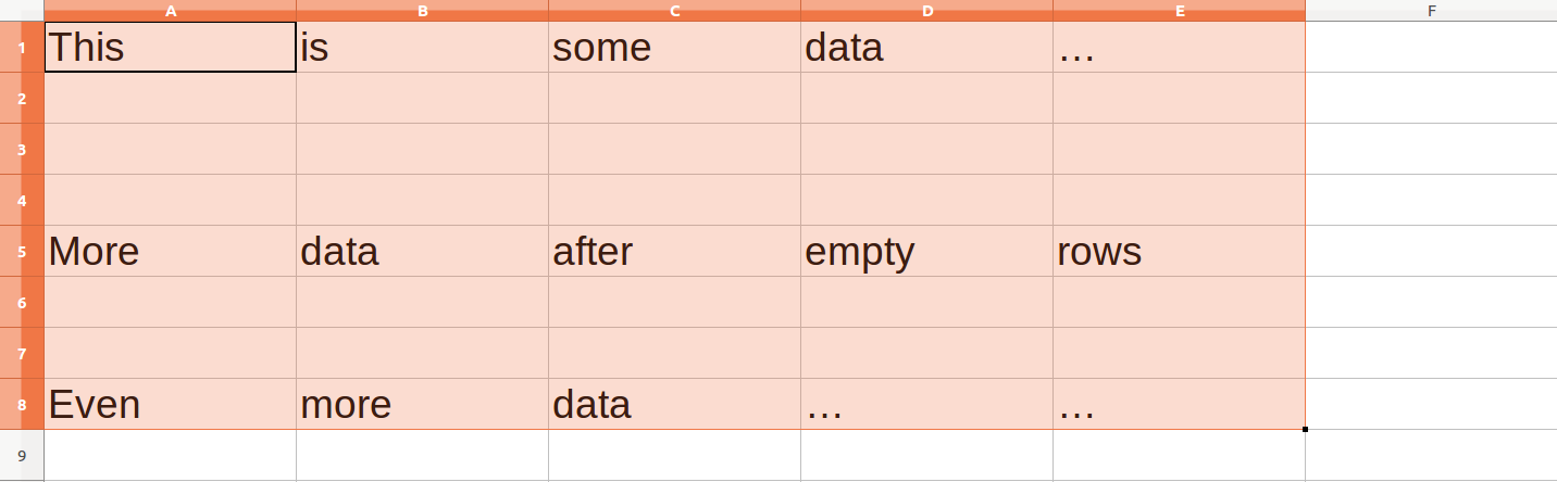 Я использую LibreOffice Calc, и моя листка содержит пару пустых строк. Например: