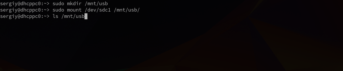 Удостовериться что флешка подключена можно посмотрев содержимое каталога, в который мы ее монтировали: