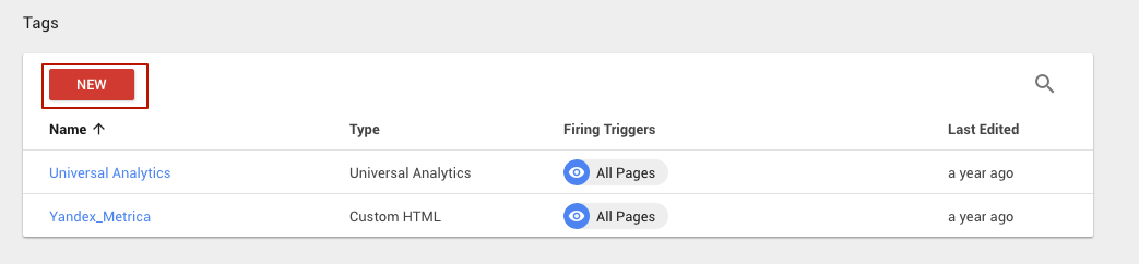 Сначала узнайте, как установить Google Tag Manager на сайт и зачем он нужен, алгоритм похож на установку кода Метрики или Analytics. Предположим, вы его установили и находитесь на главном экране. Переходим в раздел «Теги» и создаем новый тег.