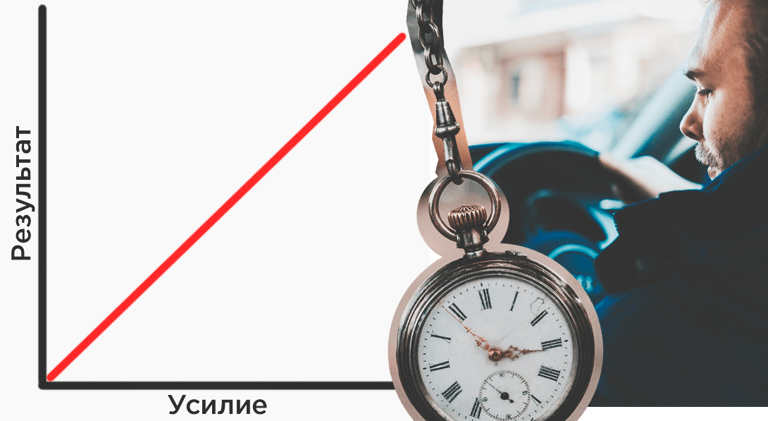 В первом случае мы рассмотрим прямую зависимость результата от усилий, которая на графике отображена в виде линейной кривой, движущейся вверх. Безусловно, есть множество вещей, в которых твои старания принесут должный эффект. Но есть плохая новость. Как правило, этот принцип работает в незначительных аспектах нашей жизни и касается легких и часто повторяющихся дел: вождения автомобиля, уборки в квартире, заполнения документов и пр. Во всех этих случаях тщательный подход гарантирует лучший результат. Абсолютно закономерно, что если протирать ванну в течение часа, то она будет намного чище, чем если делать это всего 15 минут.
