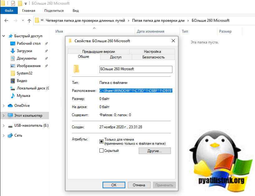 Хочу отметить, что на период ноября 2020 года и последней версий Windows 10 1909, в ПРОВОДНИКЕ Windows до сих пор есть ограничения в 260 символов, и мы все слышим обещания, что их исправят