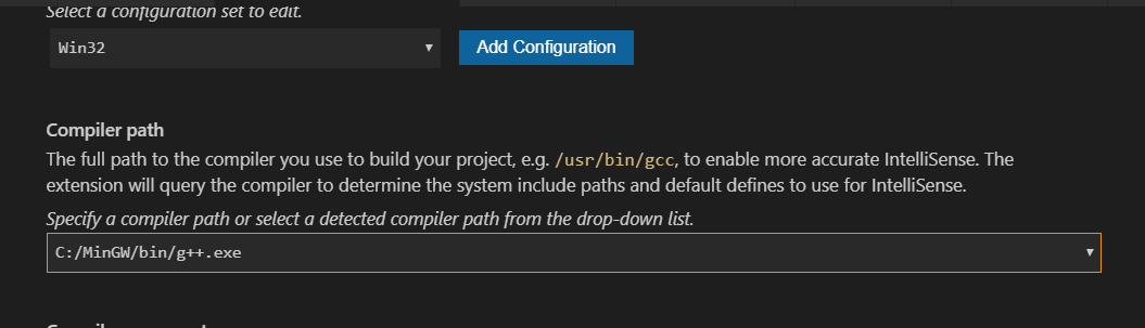 Нажмите на лампочку и отредактируйте открываемый файл JSON. Выберите правильный блок, соответствующий вашей платформе (есть , , — версия ms-vscode.cpptools: 3). Обновите пути в (имеет значение, если вы компилируете с VS Code) или (имеет значение, если вы перемещаетесь с VS Code) или в обоих.