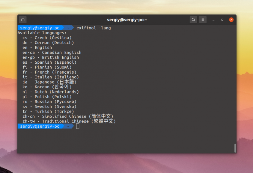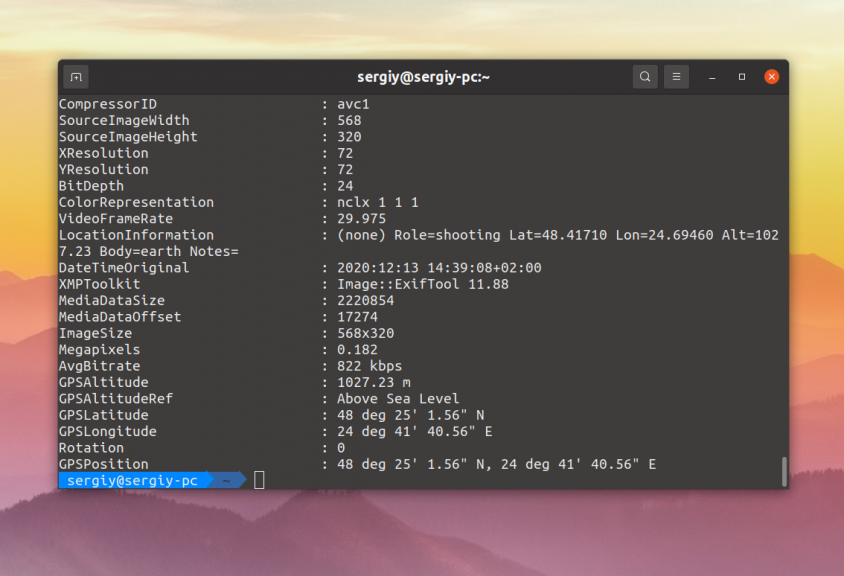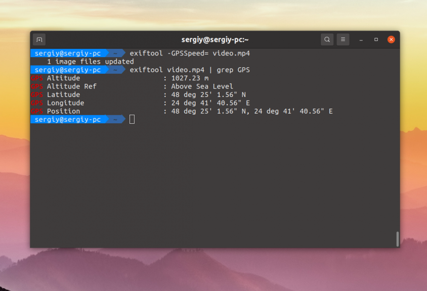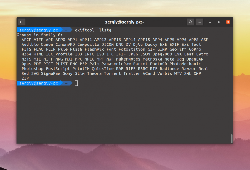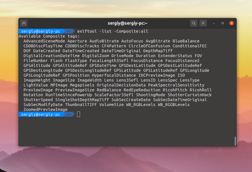 Прежде всего, надо отметить, что exiftool — это утилита командной строки. У неё нет графического интерфейса и её придется использовать в терминале. Синтаксис у команды достаточно простой: