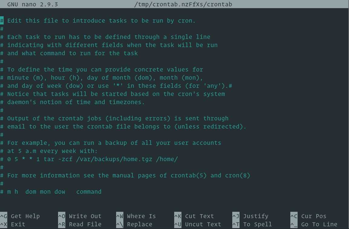 - Если вы хотите писать задания Cron для текущего пользователя, вы должны получить доступ к файлу Crontab текущего пользователя с помощью команды, показанной ниже: