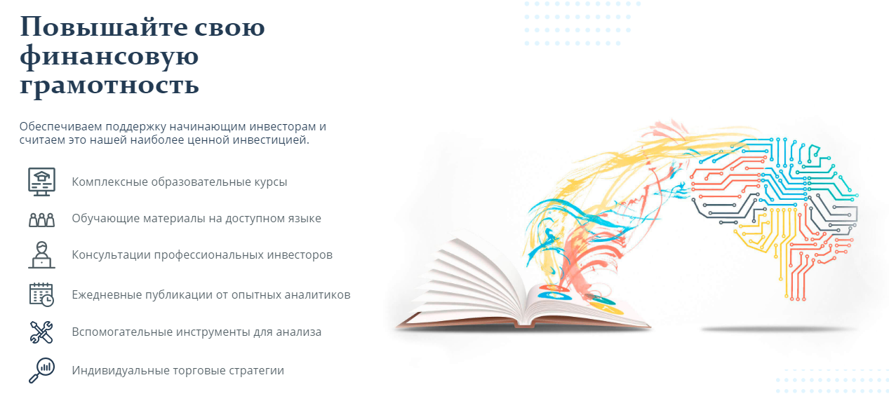 2. Наличие уникального раздела с обучающими материалами и уроками, нацеленными на повышение профессионализма и улучшение финансовых результатов на длинной дистанции.