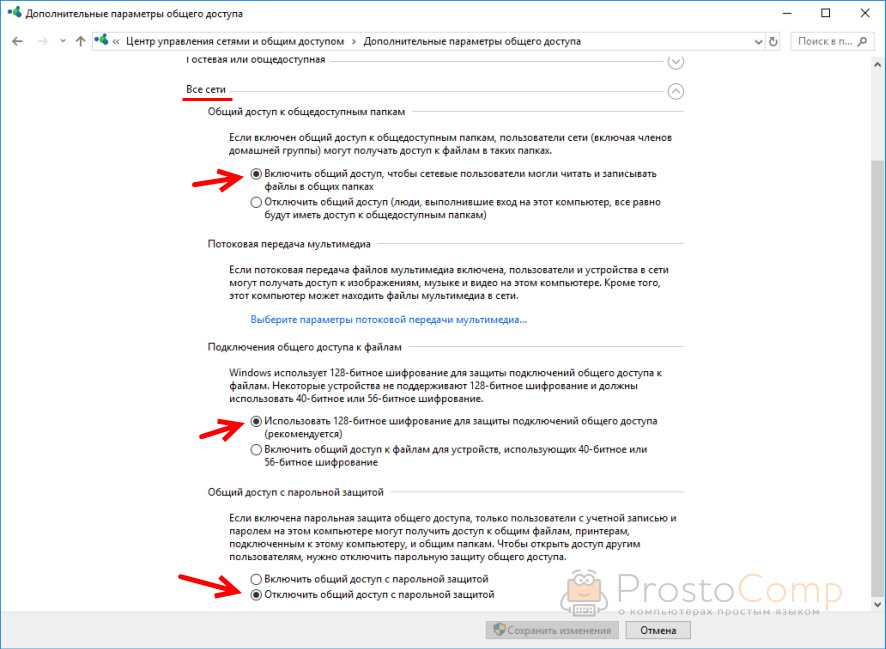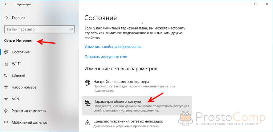 Проверка параметров общего доступа в Windows 10