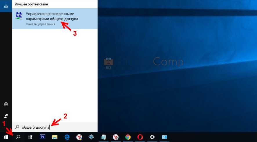 Открываем меню «Пуск» (или нажав на кнопку поиска) и пишем «общего доступа». Открываем «Управление расширенными параметрами общего доступа».