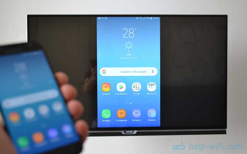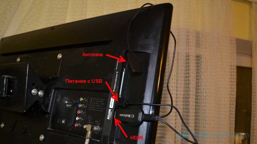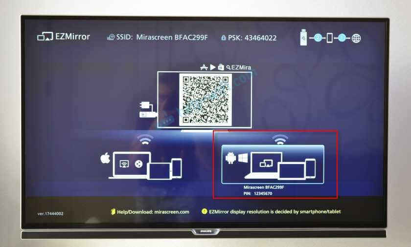 С первым же пунктом немного сложнее. Не все даже современные телевизоры даже со Smart TV имеют встроенную поддержку зеркалирования экрана через MiraScreen или WiFi Direct. Это касается любого производителя, будь то Samsung, LG, Philips, Sony или какого-либо еще. Но решается вопрос очень просто — с помощью внешнего беспроводного адаптера с поддержкой Миракаст.