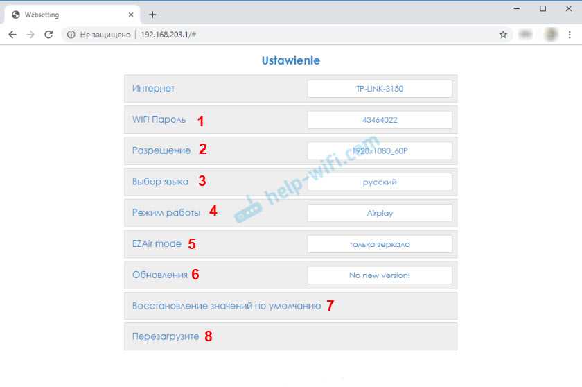 Очень частая проблема, когда не заходит в настройки MiraScreen или AnyCast адаптера. Страница по адресу 192.168.203.1 просто не открывается и настройки недоступны. Обычно появляется ошибка «Не удается получить доступ к сайту. Превышено время ожидания ответа от сайта 192.168.203.1».