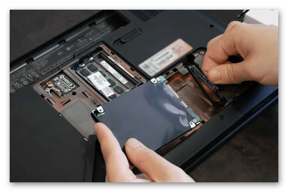 У ноутбуков подключение SATA-дисков происходит напрямую, без кабеля, благодаря чему нет необходимости беспокоиться о его возможном повреждении — достаточно просто отсоединить HDD или SSD от разъема и подключить обратно, а затем проверить, повлияло ли это на проблему. Современные SSD m.2 подключаются как планки оперативной памяти, и достать их для переподключения еще проще.