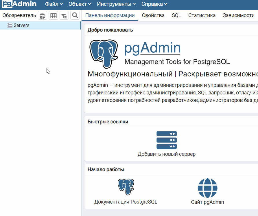 Для написания SQL запросов в pgAdmin 4 используется инструмент Query Tool или на русском «Запросник», его можно запустить с помощью иконки на панели или из меню «Инструменты», предварительно выбрав базу данных.