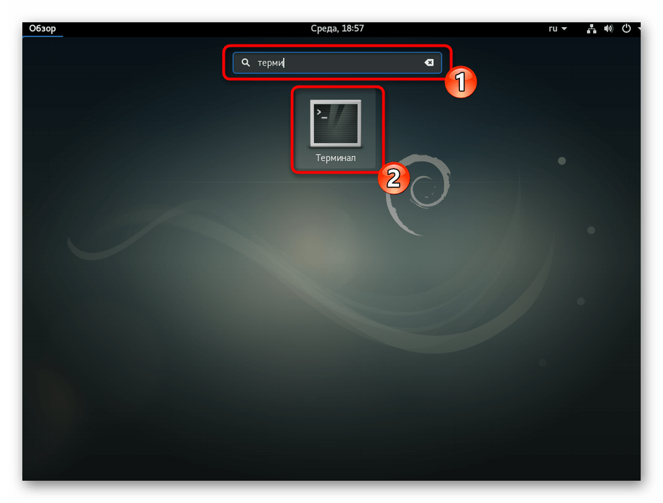 - Для начала рекомендуем еще раз убедиться в том, что ifconfig недоступна. Запустите классический терминал любым удобным вариантом.