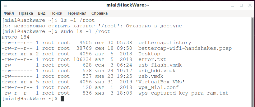 ls: невозможно открыть каталог '/root': Отказано в доступе