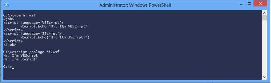 Сценарии WSF могут одновременно содержать JScript- и VBScript-сценарии. Это сделано для того, чтобы увеличить гибкость написания кода, а также обеспечить модульность и повторное использование кода.