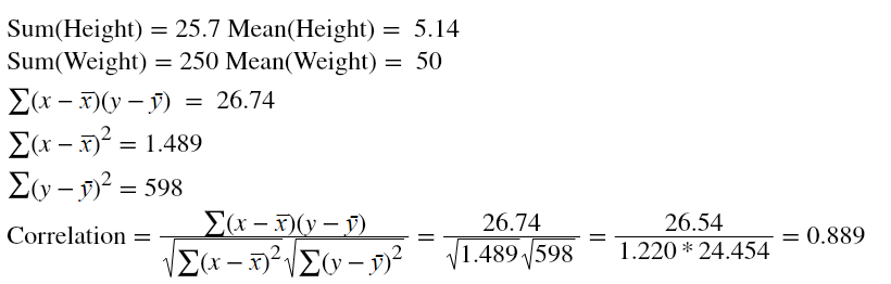 Корреляция 0,889 говорит нам, что рост и вес имеют положительную корреляцию. Очевидно, что с ростом человека вес тоже увеличивается.