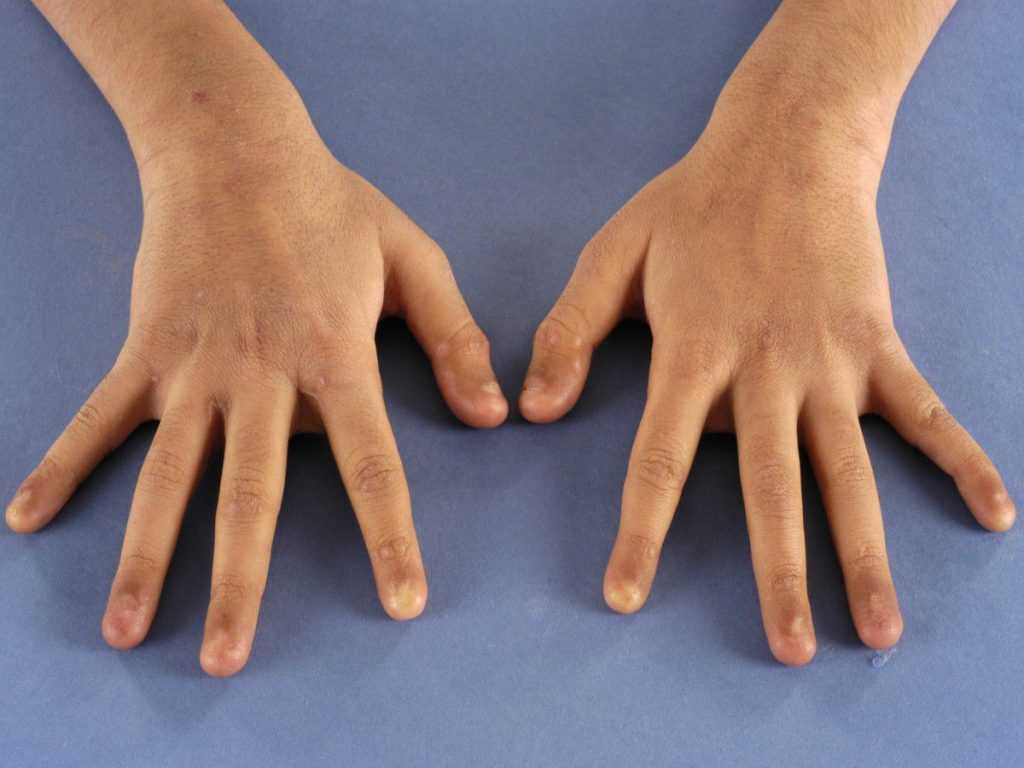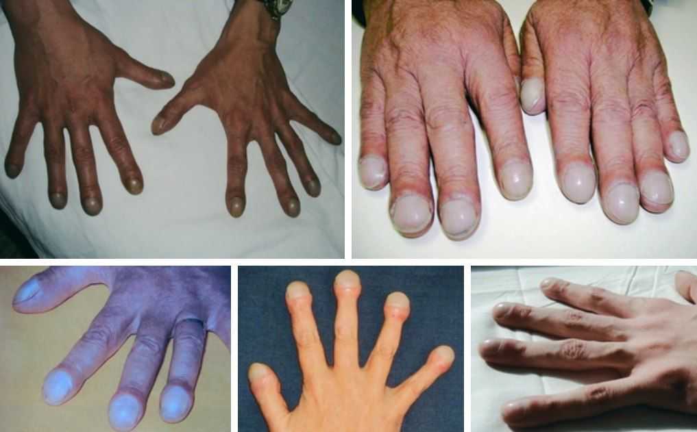 пальцы приобретают форму барабанных палочек. При всей грубости ногтей они