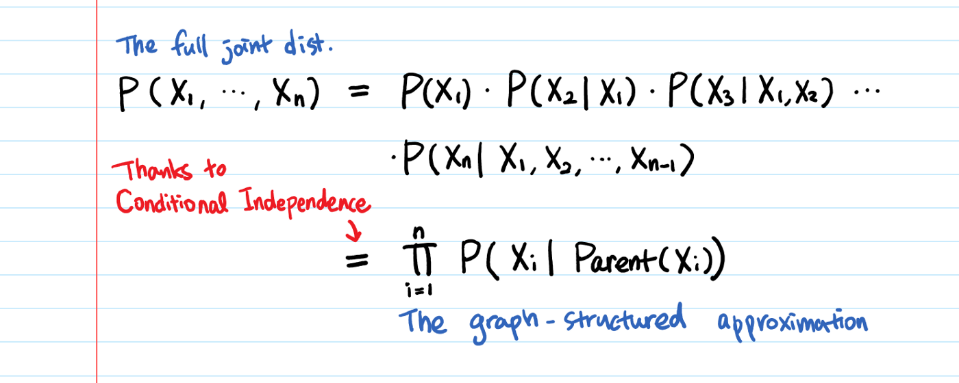 Используя это свойство, мы можем упростить совместное распределение в формулу ниже: