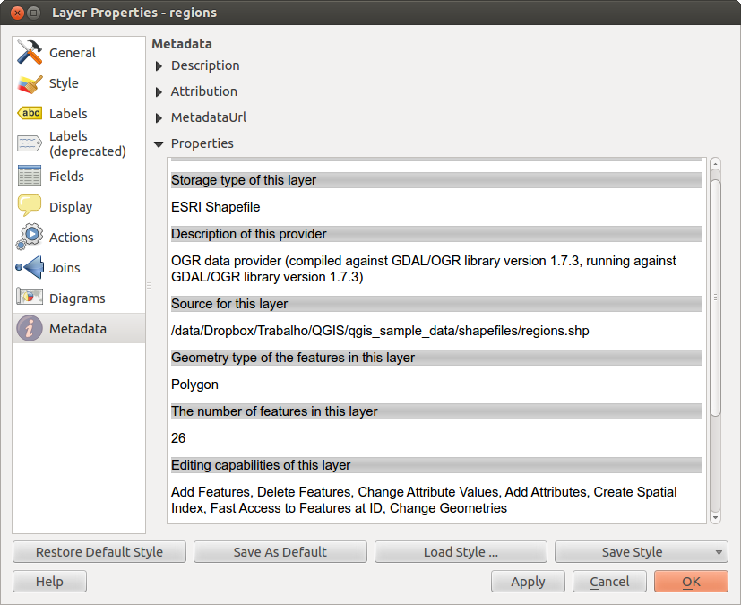 Additionally you can add/edit a title for the layer and some abstract information in the Description.