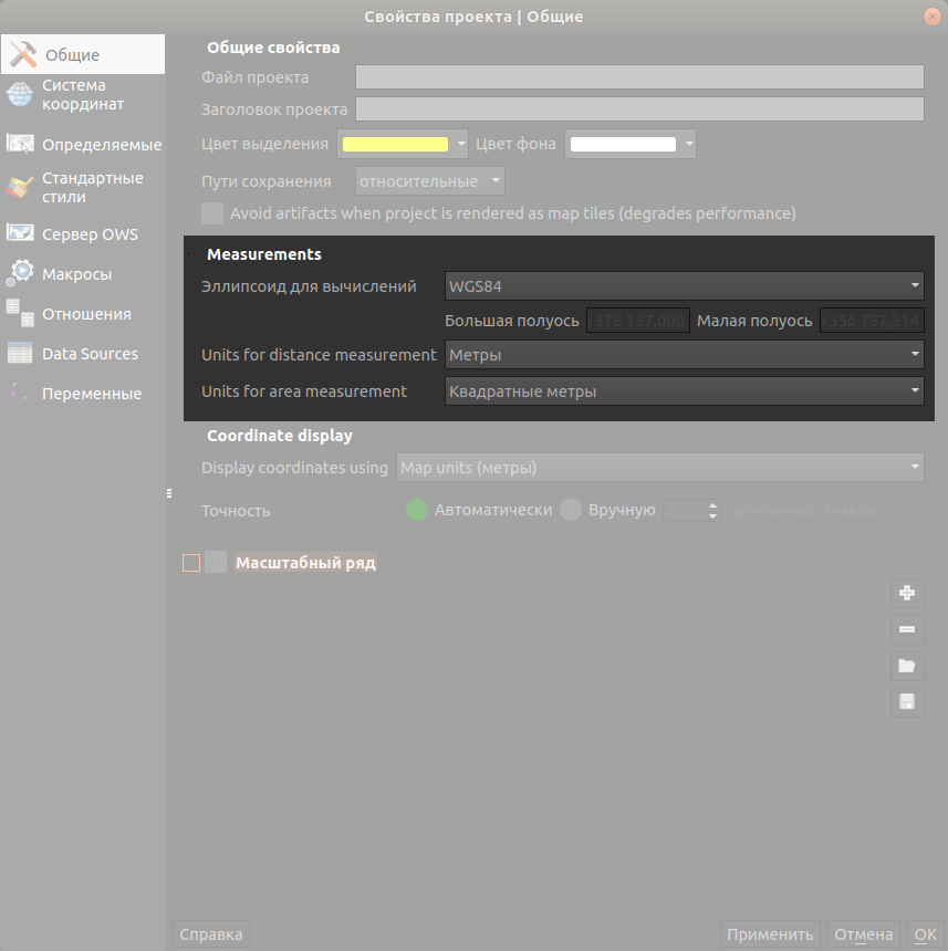 В свойствах проекта «Общие» выставить «Эллипсоид для вычислений» в значение WGS 84,