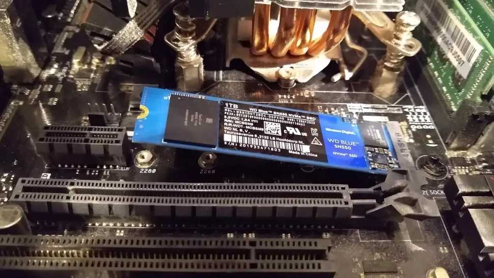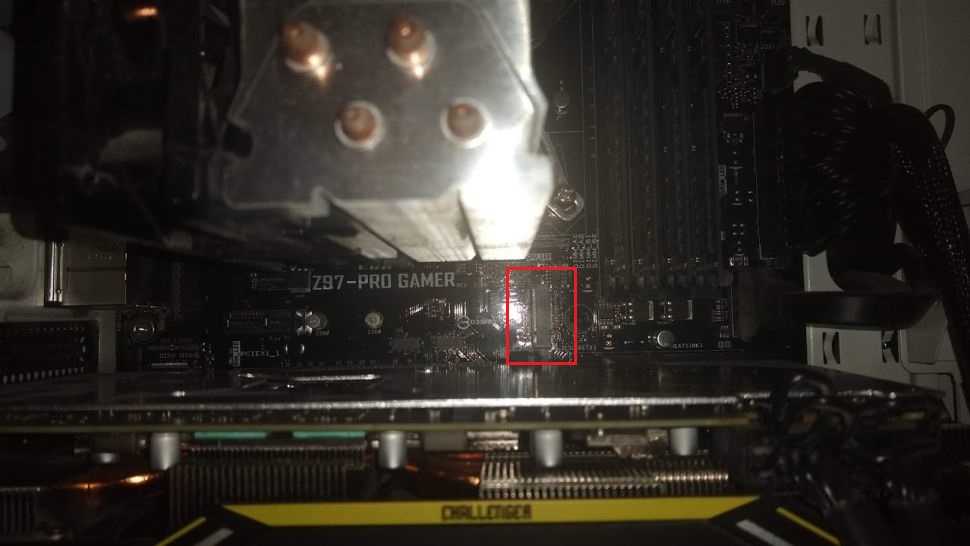 Как можно увидеть на изображении выше, слот довольно неудобно располагается между видеокартой и процессором. Чтобы установить в него накопитель, нужно извлечь видеокарту.