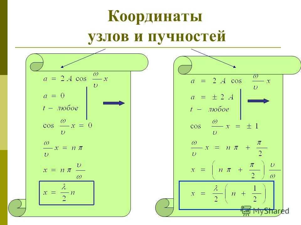 Узлы и пучности стоячей волны Узлы – неперемещающиеся точки стоячей волны Пучности – точки стоячей волны, колеблющиеся с максимальной амплитудой