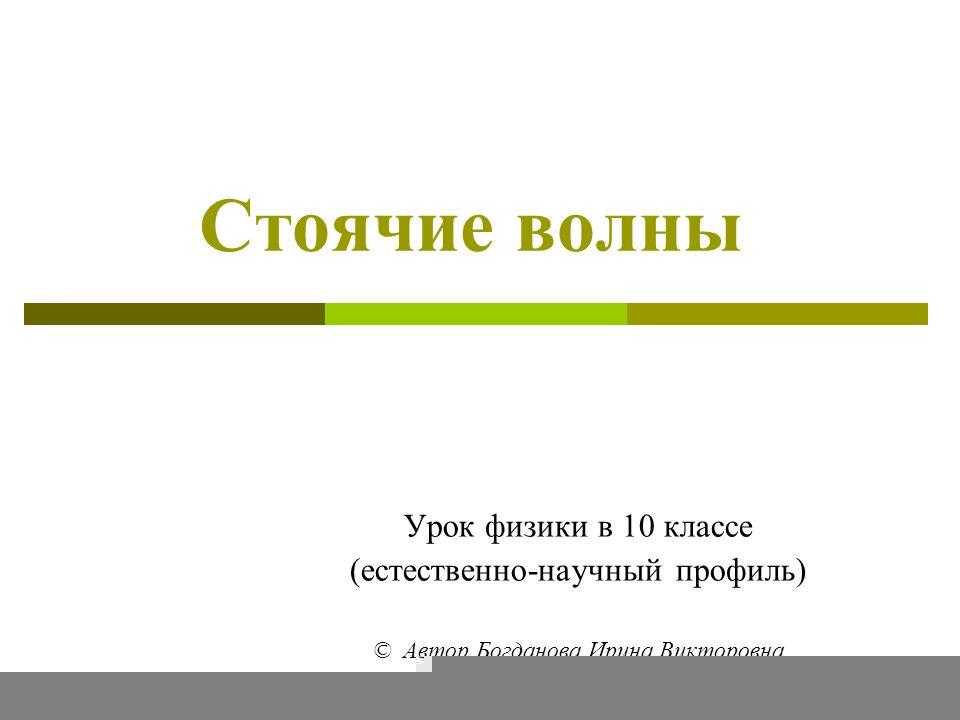 Презентация 10 класса по предмету «Физика и Астрономия» на тему: «Стоячие волны Урок физики в 10 классе (естественно-научный профиль) © Автор Богданова Ирина Викторовна.». Скачать бесплатно и без регистрации. — Транскрипт: