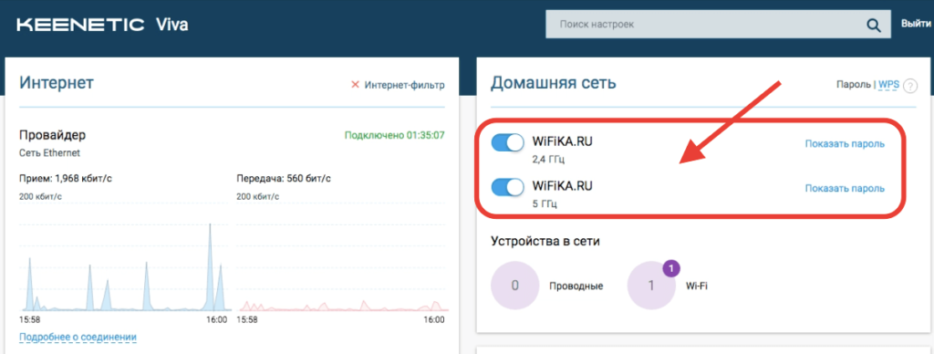 Рассмотрим, как работает Band Steering на конкретном примере — на маршрутизаторе Zyxel Keenetic Viva. При первом подключении по умолчанию эта функция включена.