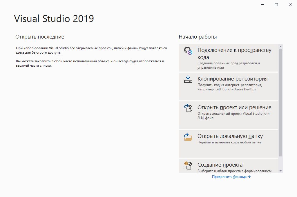 Создание проекта в Visual Studio 2017 или в более ранней версии