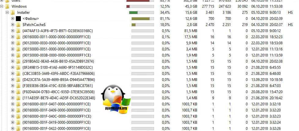 Как видите у меня папка Windows Installer занимает много места, это аж 15 ГБ. Если открыть ее содержимое, то вы увидите GUID номера, ваших программ.