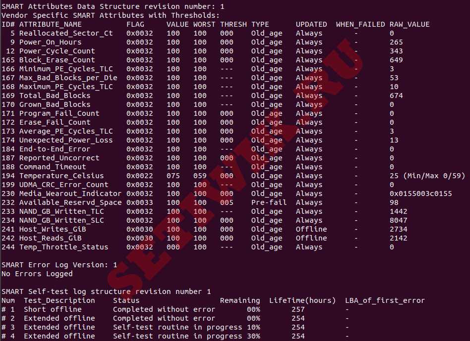 результат самотестирования smartctl