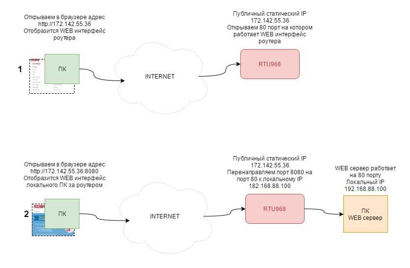 Перенаправление используется, чтобы перенаправить запросы с внешнего порта к другому или тому же порту в локальную сеть.