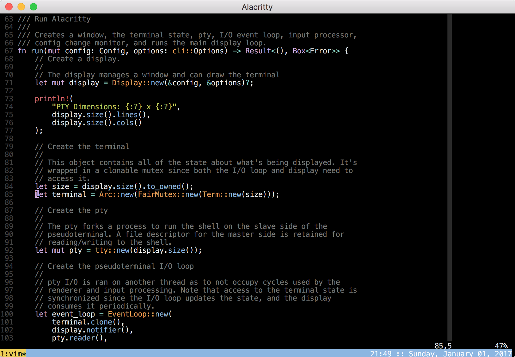 Еще лучше попробовать Alacritty. Это быстрый, написанный на Rust, кросс-платформенный терминал, который эффективно работает с GPU. Он позволяет рендерить графику гораздо быстрее, чем любой из существующих аналогов. Из непривычностей — все настройки хранятся в текстовых файлах, да и управление окном придется допиливать самому. Например, в macOS не работает CMD + H, так что окно шоткатом из коробки не спрятать.