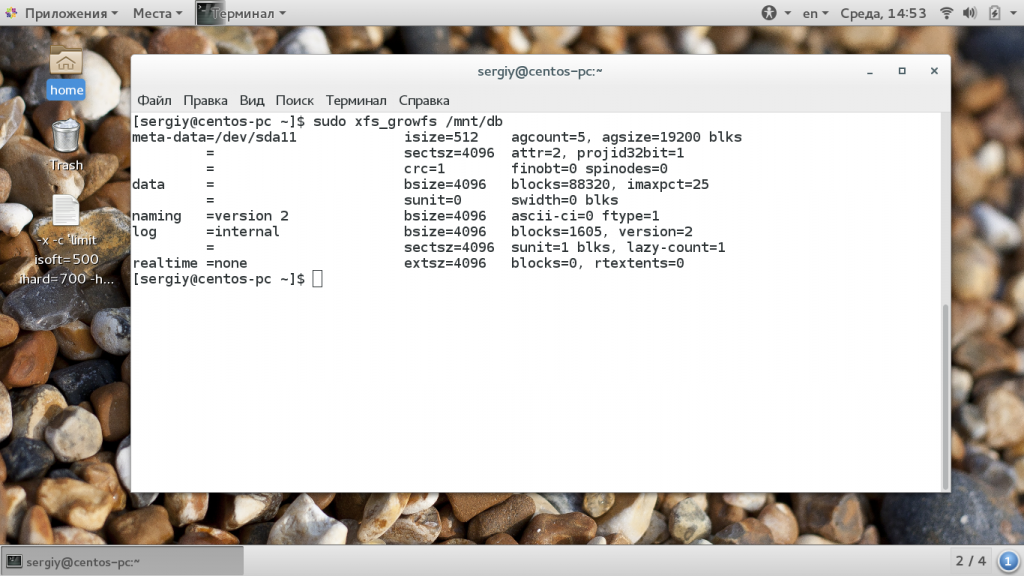 Затем осталось увеличить размер файловой системы, это можно сделать даже если файловая система смонтирована. Выполните команду: