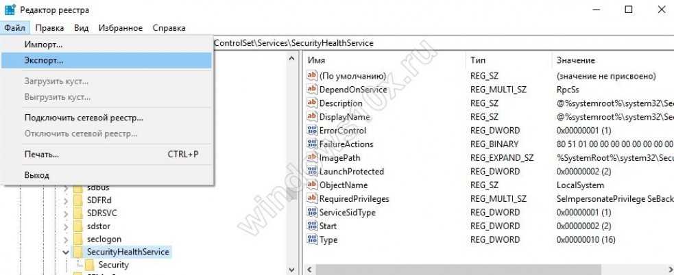 - Правой кнопкой мыши тапнуть на каталог (ключ) Windows Defender.