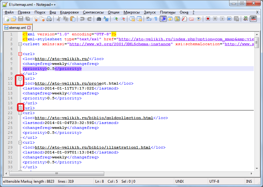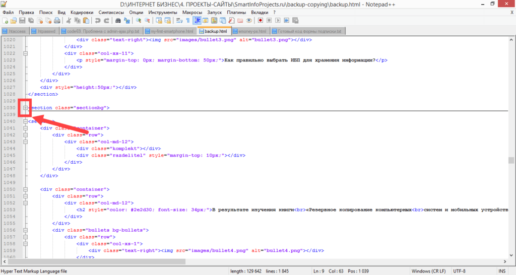 При включении соответствующей функции, приложение само способно проставлять ошибочно пропущенные знаки разметки. Кроме того, приложение Нотепад++ способно сворачивать отдельные блоки кода, делая работу с ним удобнее.