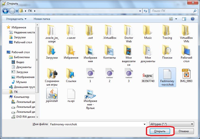 Для того, чтобы открыть текстовый файл, достаточно из верхнего горизонтального меню перейти последовательно по пунктам «Файл» и «Открыть». В появившемся окне остается только найти нужный файл на жестком диске или съемном носителе, выбрать его, и нажать на кнопку «Открыть».