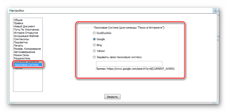 Раздел «Поисковая система» позволяет указать, куда каким поисковиком по умолчанию пользоваться при использовании команды «Поиск в Интернете»