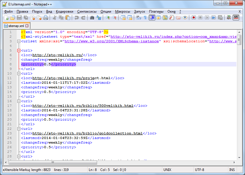 - Открыть нужный документ в Notepad++.