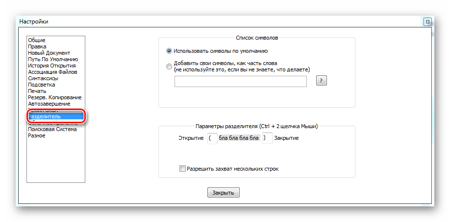 Вкладка «Разделитель» устанавливает значок для разделителя. Первоначально там указаны скобки, но вы всегда можете поменять это значение.