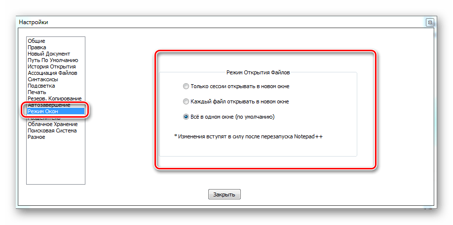 - Раздел «Режим окон» позволяет определить, как будут открываться новые файлы.