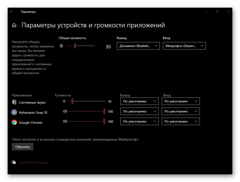 Здесь можно отрегулировать как общую громкость, так и изменить параметры конфиденциальности, воспользоваться мастером устранения неполадок (например, если со звуком наблюдаются какие-то проблемы).