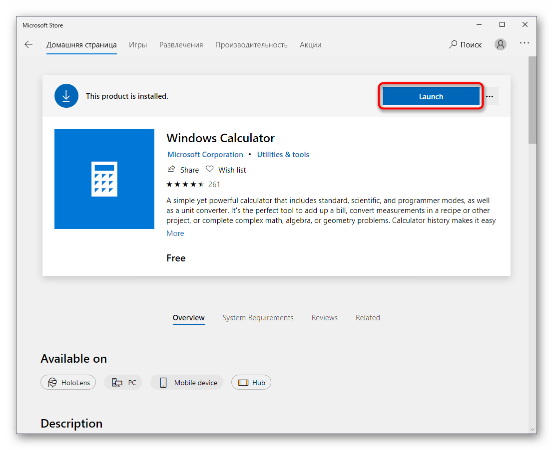 После успешного выполнения вышеописанных шагов калькулятор снова начнёт запускаться и полноценно работать.