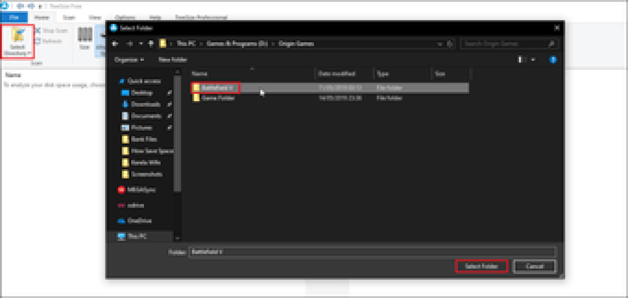 Шаг 2: Когда откроется TreeSize, нажмите «Выбрать каталог». Во вновь открывшемся окне перейдите к расположению файлов игры и выберите основную папку, содержащую все файлы.