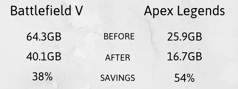 Несмотря на свою сложность, этот метод позволяет значительно сократить размер файлов игры при условии, что файлы имеют логические имена и после этого игра будет работать без сбоев.